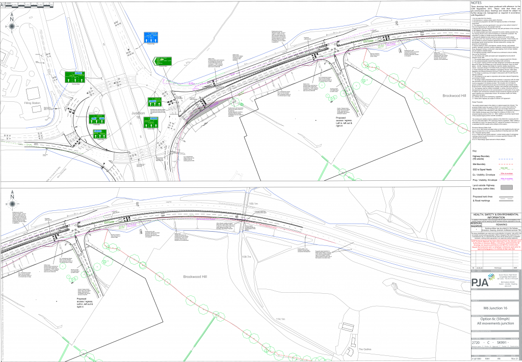 Lane widening has also been proposed within the Junction 16, M6 circulatory and the A500 west bound carriageway to increased queuing capacity at the existing roundabout. The increased queueing provisions set out to accommodate the additional traffic flows associated with the development on approach to and around the existing junction.
