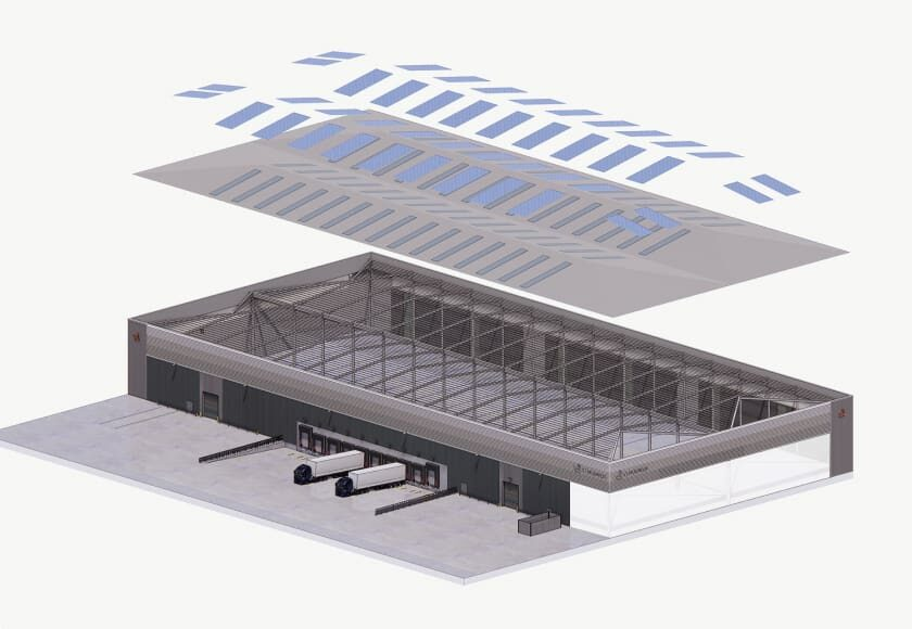 Roof designed with PV in place with flexibility to extend to meet customer power needs.